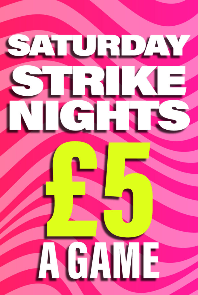 Late Night Bowling – £5 a Game Keep the night rolling with our Late Night Deal. Bowl for just £5 per game every Saturday after 9pm — perfect for night owls, mates’ nights out and weekend vibes.